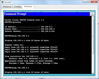 Router(config)#interface fa0/0 Router(config-if)#ip address 192.168.3.254 255.255.255.0 Router(config-if)#no shutdown %LINK-5-CHANGED: Interface FastEthernet0/0, changed state to up %LINEPROTO-5-UPDOWN: Line protocol on Interface FastEthernet0/0, changed state to up Router(config-if)#exit